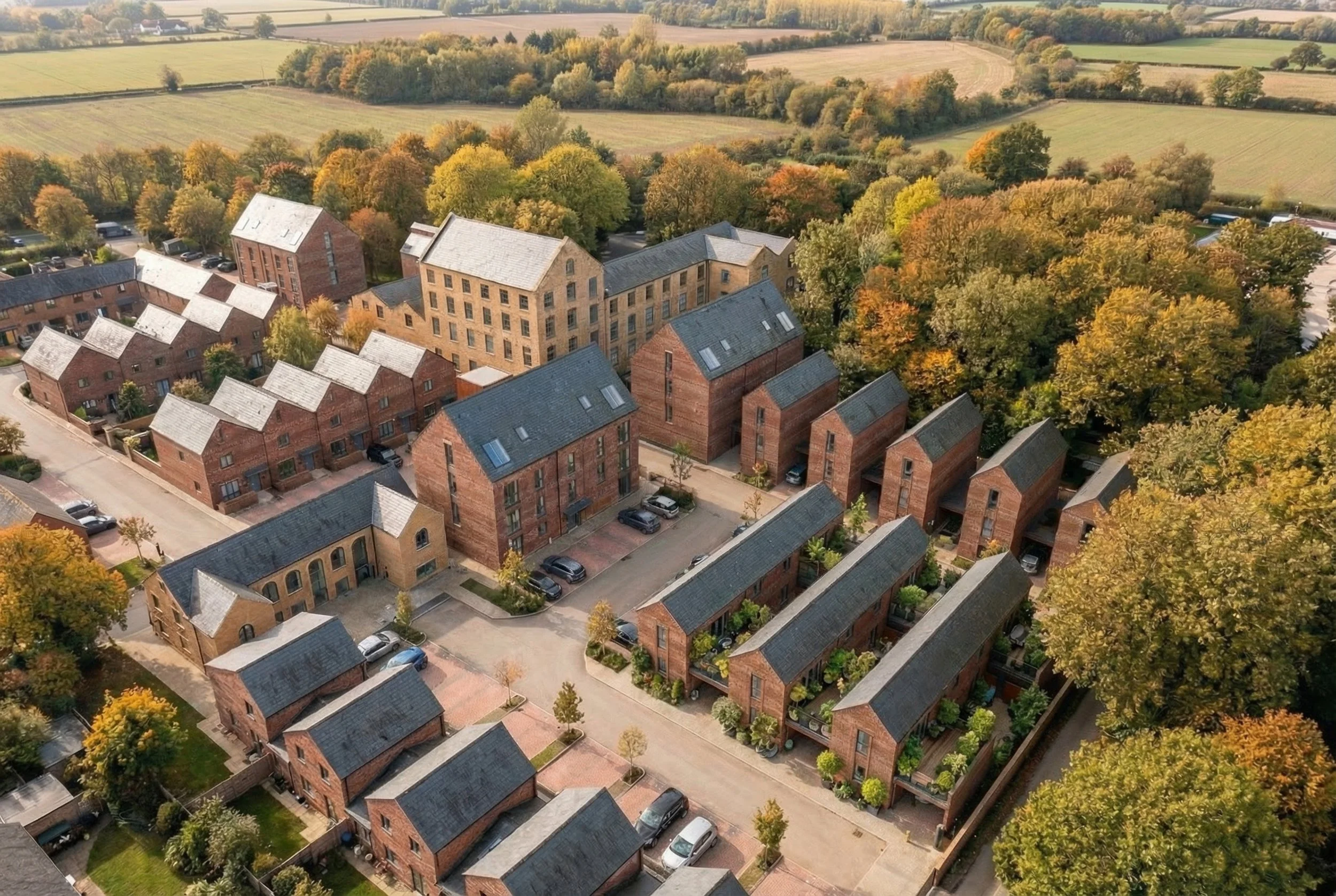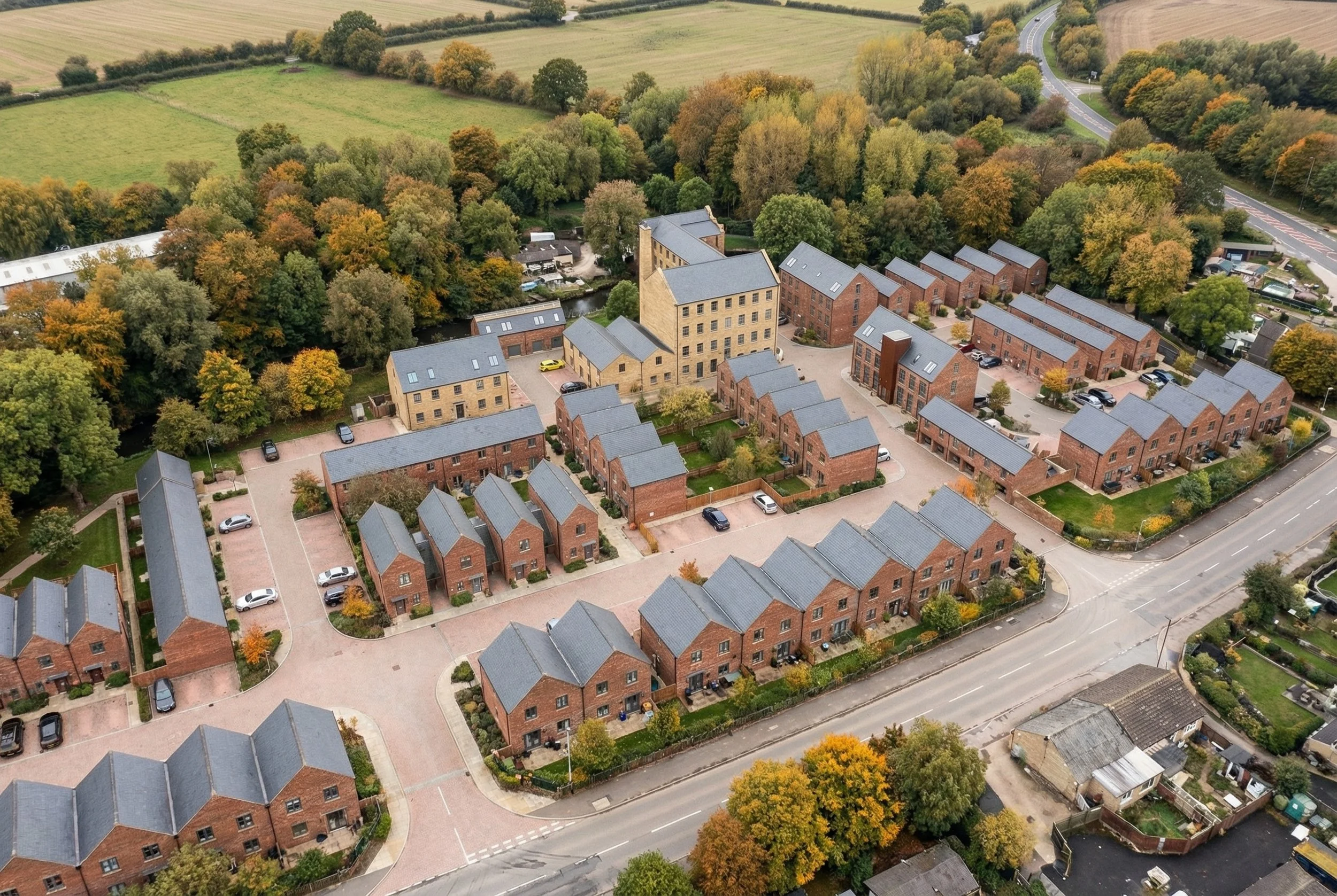 Working with Stonewood Homes, the scheme comprises 105 new dwellings, including the sensitive conversion of Ham Mill and two other heritage buildings into 21 homes, alongside 400m² of commercial space. Carefully designed open spaces, restored alleyways, and riverside corridors reinforce the site’s industrial character, providing a distinct sense of place. Green infrastructure, biodiversity enhancements, and sustainable drainage systems are integrated throughout.