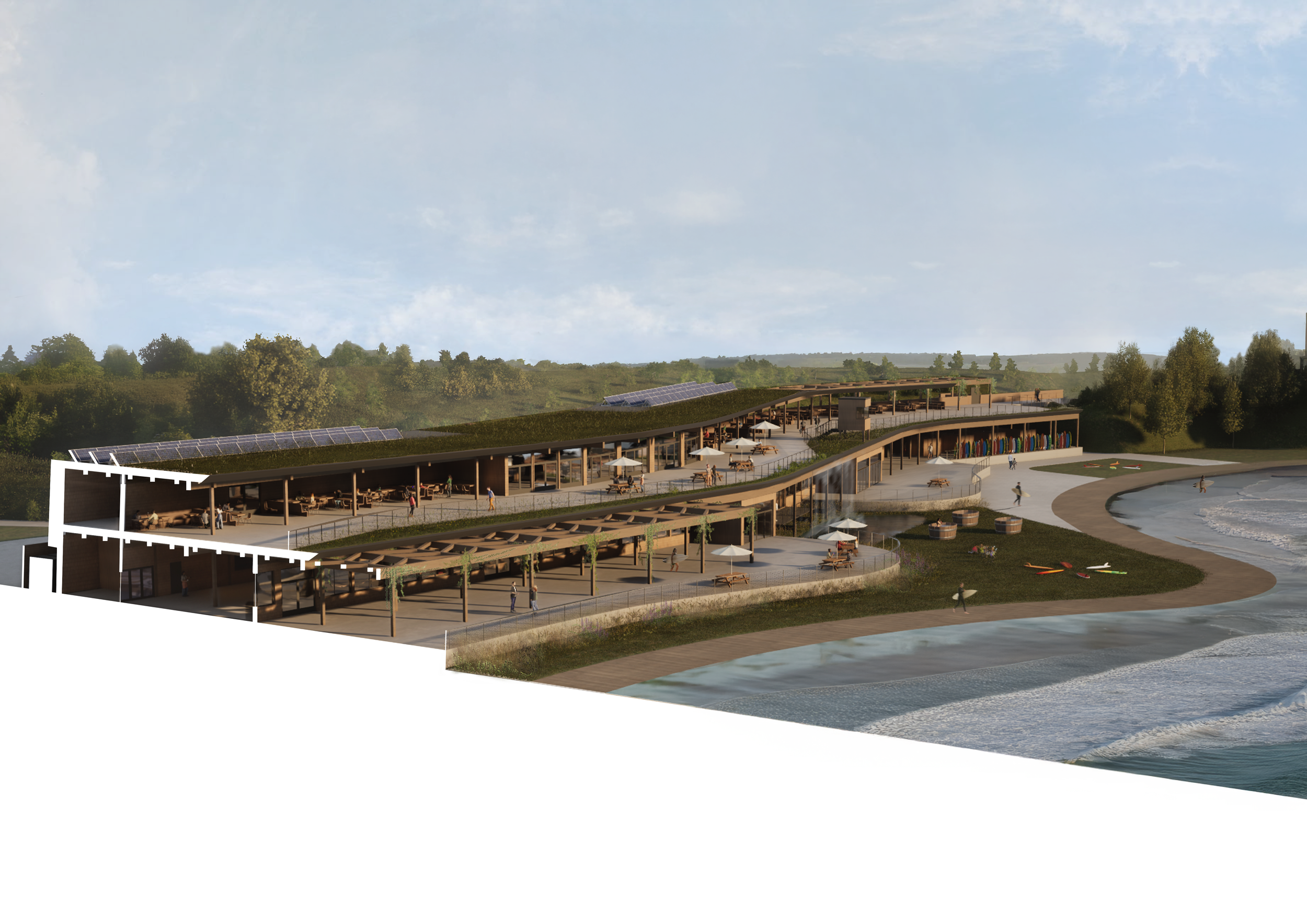 The Wave London is imagined as a pioneering regenerative park where sport, nature, and wellbeing converge to form an inclusive, dynamic, and restorative destination. More than just a surf facility, it aims to offer a new kind of public space—an immersive experience grounded in sustainability and connection. The masterplan brings together two interlinked zones: The Wave — the central surf destination — and The Park, a broader landscape of recreation, relaxation, and education. Together, they support movement, learning, nature connection, and community wellbeing for all ages and abilities.